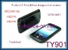 Latest Android 2.2 Capacitive 3G Android smartphone ( BE-TY901 ) Specification: ChipsetQualcomm MSM7627,600MHzOSAndroid 2.2 FroyoRFGSM/GPRS/EDGE 4 bands(850/900/1800/1900MHz) For Europe and Asia:WCDMA/HSPA 3 bands(900/1900/2100MHz) For US,Latin America,Australia: WCDMA/HSPA 3 bands(850/1900/2100MHz) HSDPA up to 7.2Mbps/HSUPA 5.76MbpsDisplay3.2" HVGA TFT(resolution 320X480)Touch PanelMulti-Touch CapacitiveMemory512MB ROM + 256MB RAM,support extended to 32GBBattery1230mAh Li-onSize115x57x12.4mmBattery LifeTalk time:Up to 5 hrs Standby:Up to 300hrsCamera5.0 Mega Pixels EDOF with LED FlashWLAN802.11b/g & B v2.0 with EDRGPSGPS/AGPSExternal IOmicro-USB(USB 2.0);3.5mm audio jackOtherG-sensor,Proximity Sensor,Ambient Light Sensor,E-Compass,trackball